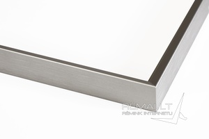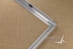 Remai.lt rėminimo salonuose Vilniuje ir Kaune rasite gausią aliuminių rėmelių pasiūlą. Aliuminiai rėmeliai pasižymi siaurais profiliais ir tvirtumu, todėl jie idealiai tiks tiems, kas nori įrėminti didelio formato paveikslą į siaurą rėmą. Aliuminiai rėmeliai atrodo minimalistiškai, moderniai ir kartu elegantiškai. Norintiems puošnumo, pasiūlysime aukso spalvos metalinius rėmelius, o norintiems daugiau klasikos, juodus arba medžio fanieruote padengtus metalinius rėmus, kurie atrodo kaip ypač siauri mediniai rėmai, bet pasižymi didesniu tvirtumu. Rėminant į aliuminį rėmą rėminimo kaina bus didesnė, nei rėminant į plastikinį rėmą, bet aliuminiai rėmai labai ilgaamžiai, su jais paveikslas galės keliauti iš kartos į kartą. Atkreipiame Jūsų dėmesį, kad į aliuminį rėmelį galima įrėminti tik ant popieriaus spausdintus, pieštus paveikslus, nuotraukas, nes drobės su porėmiais į juos paprasčiausiai netilps. Taip pat turėkite galvoje, kad rėminant ant popieriaus atliktus paveikslus reikalinga nugarėlė, stiklas ir, patartina, pasportas. Pasportas yra ne tik naudingas, nes sudaro tarpą tarp paveikslo ir stiklo, bet ir papildo meno kūrinį. Pasportas suteikia paveikslui erdvės, o mažiems darbeliams – ir apimties. Visi Remai.lt salonuose Vilniuje ir Kaune siūlomi pasportai yra nerūgštiniai ir nekenkia meno kūriniams.Remai.lt siūlo rinktis iš trijų tipų stiklo. Galime įdėti paprastą stiklą, jis rėminimo kainą išdidina mažiausiai, arba antirefleksinį stiklą, kuriame matysis mažiau atspindžių, o kaina skirsis nedaug nuo paprasto. Taip pat siūlome aukščiausios kokybės muziejinį stiklą, kuris yra brangus, bet vertas savo kainos – šio stiklo beveik nesimato net ir iš mažo atstumo, jis nesukuria atspindžių
