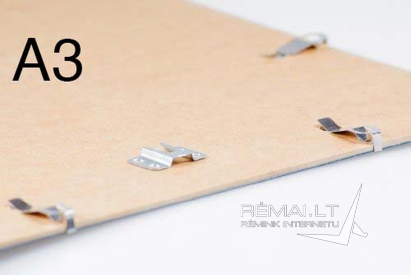 Berėmis rėmelis CLIP A3 29.7x42cm. Su stiklu ir nugarėle. Turi pakabinimus visomis kryptimis.
